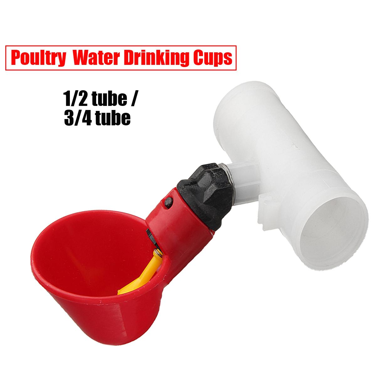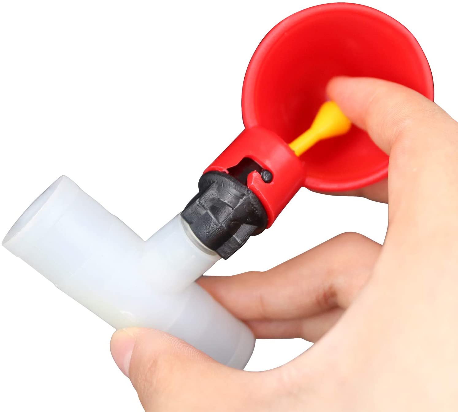 1 Pcs Chicken Automatic Water Drinking Cup Feeder Plastic Easy Installation With T – Red