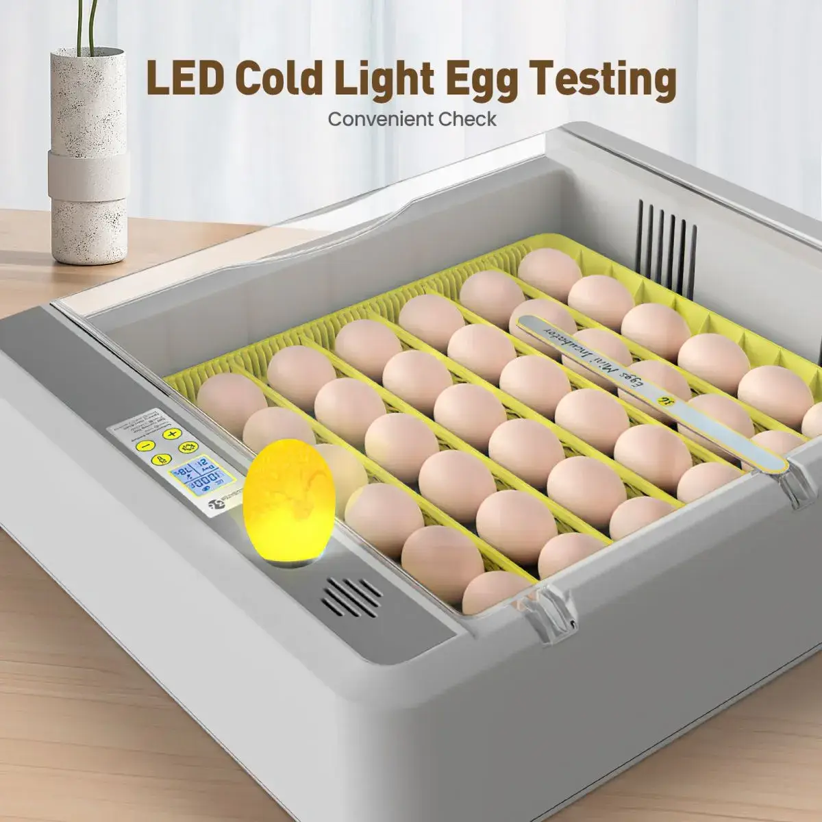 - Intelligent Incubator: Turn the eggs automatically, a perfect simulation of the original hen hatching mode. Automatic high or low temperature and humidity warning. The additional one-key LED egg candling function allows you to check hen, goose or duck eggs in every incubation stage, ensuring high hatching success rate.