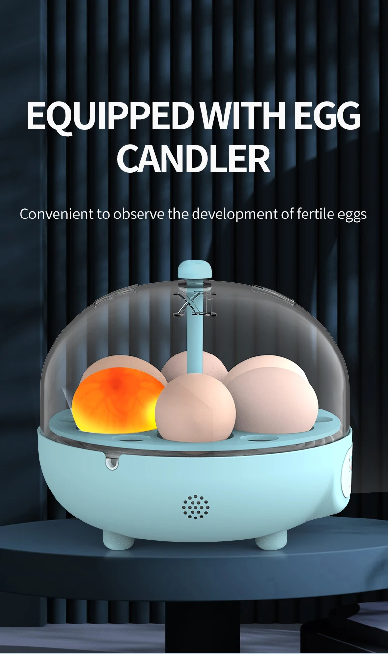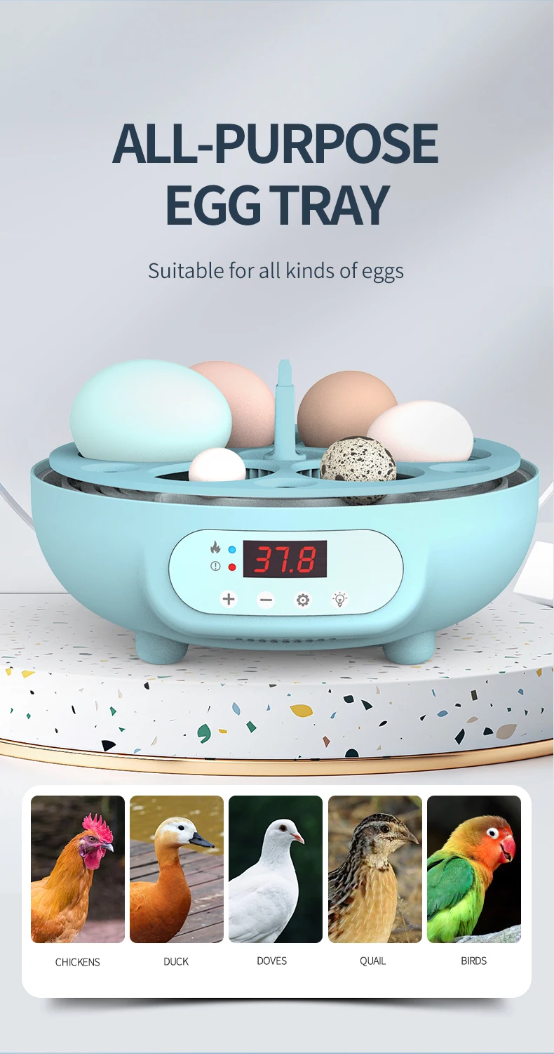 - Capacity: 6 eggs (CHicken), 25 Eggs (Birds,Quail)