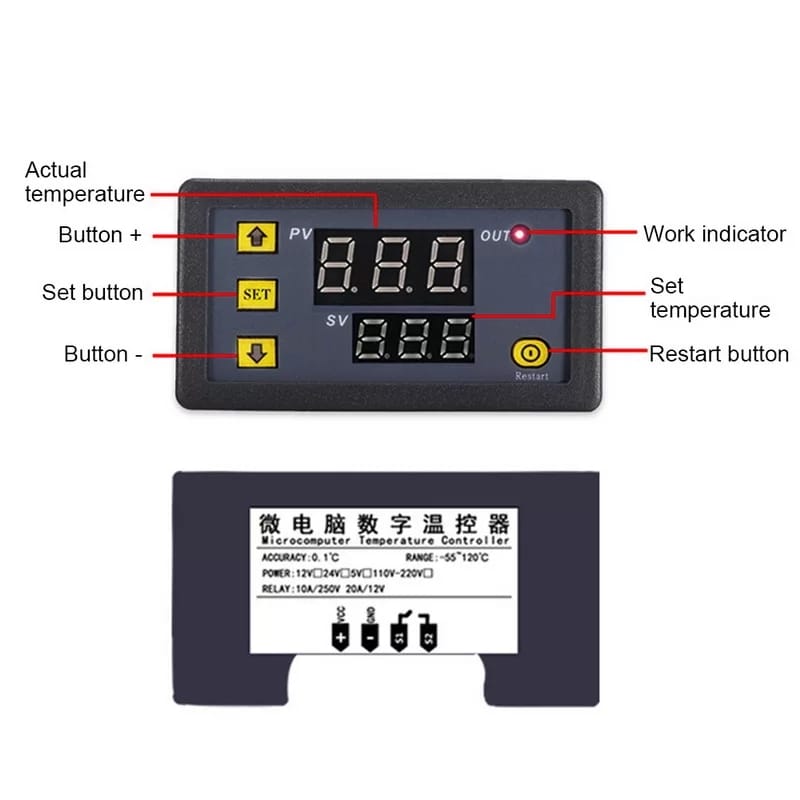W3230 Digital Temperature Controller DC 12V Thermostat Regulator Heating Cooling Control