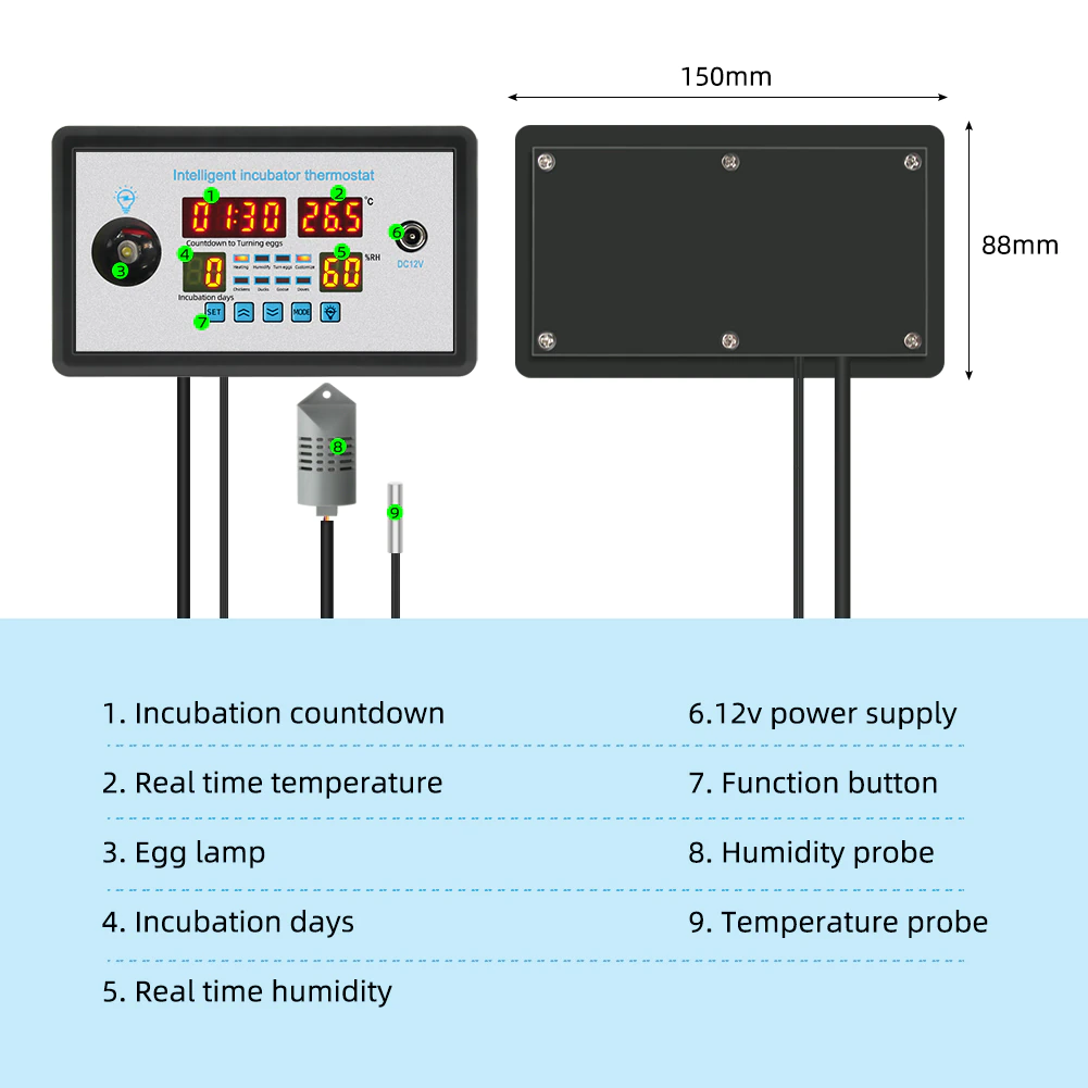 ZXF W9002 -12v DC Smart Thermostat Digital Thermostat Temperature Control Incubator 360 Automatic Egg Turning